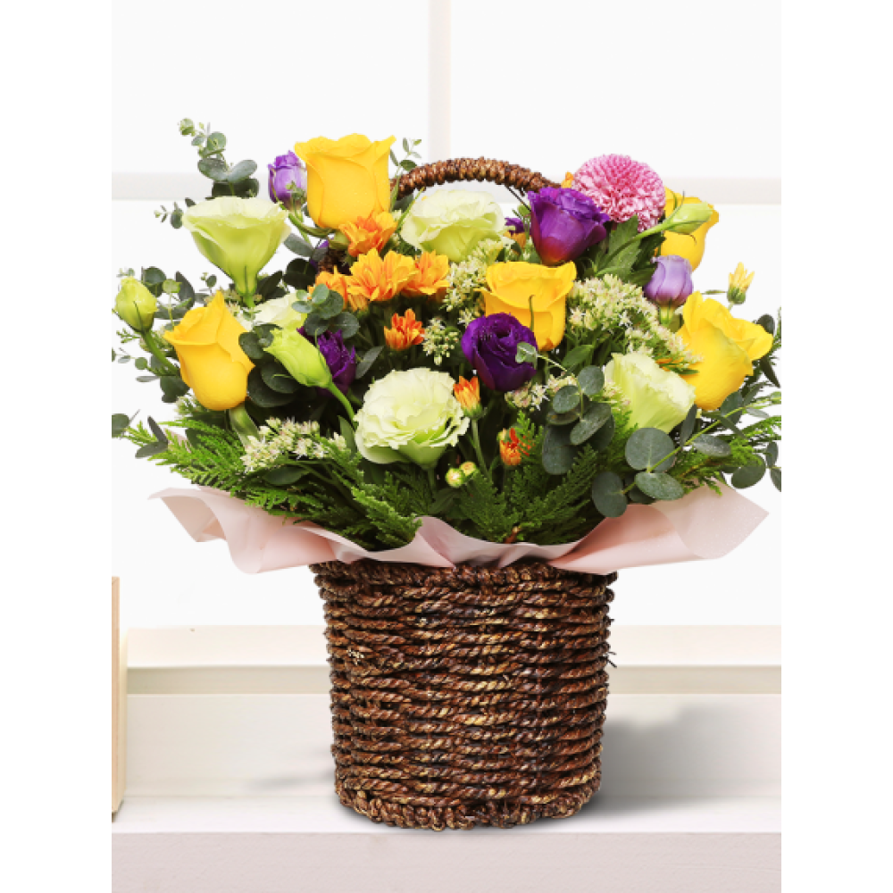 꽃바구니 - 노랑장미 (총 높이 약 40cm)+0원