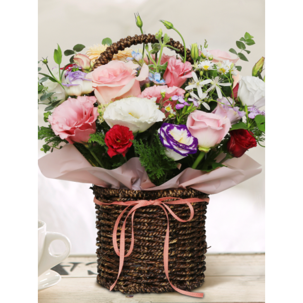 꽃바구니 - 핑크혼합 (총 높이 약 35cm)+0원