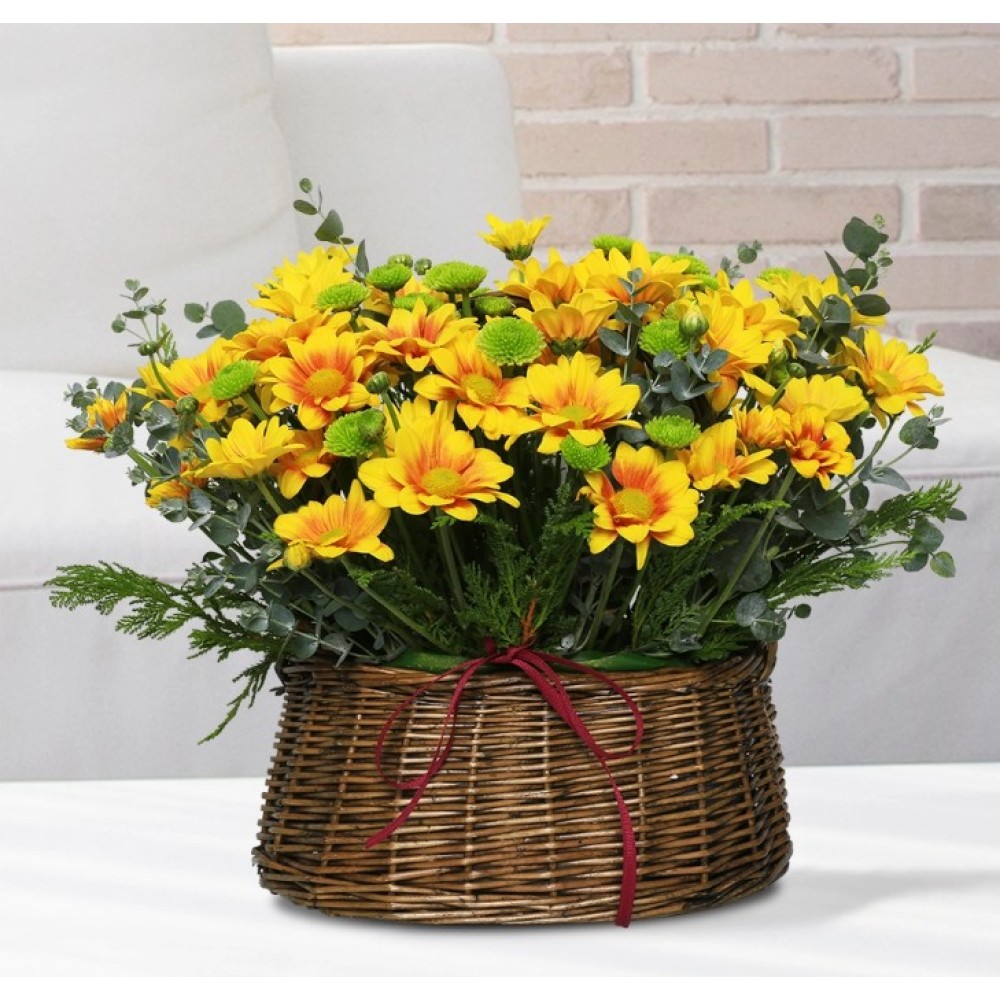 꽃바구니 - 노란소국 (총 높이 약 33cm)+0원