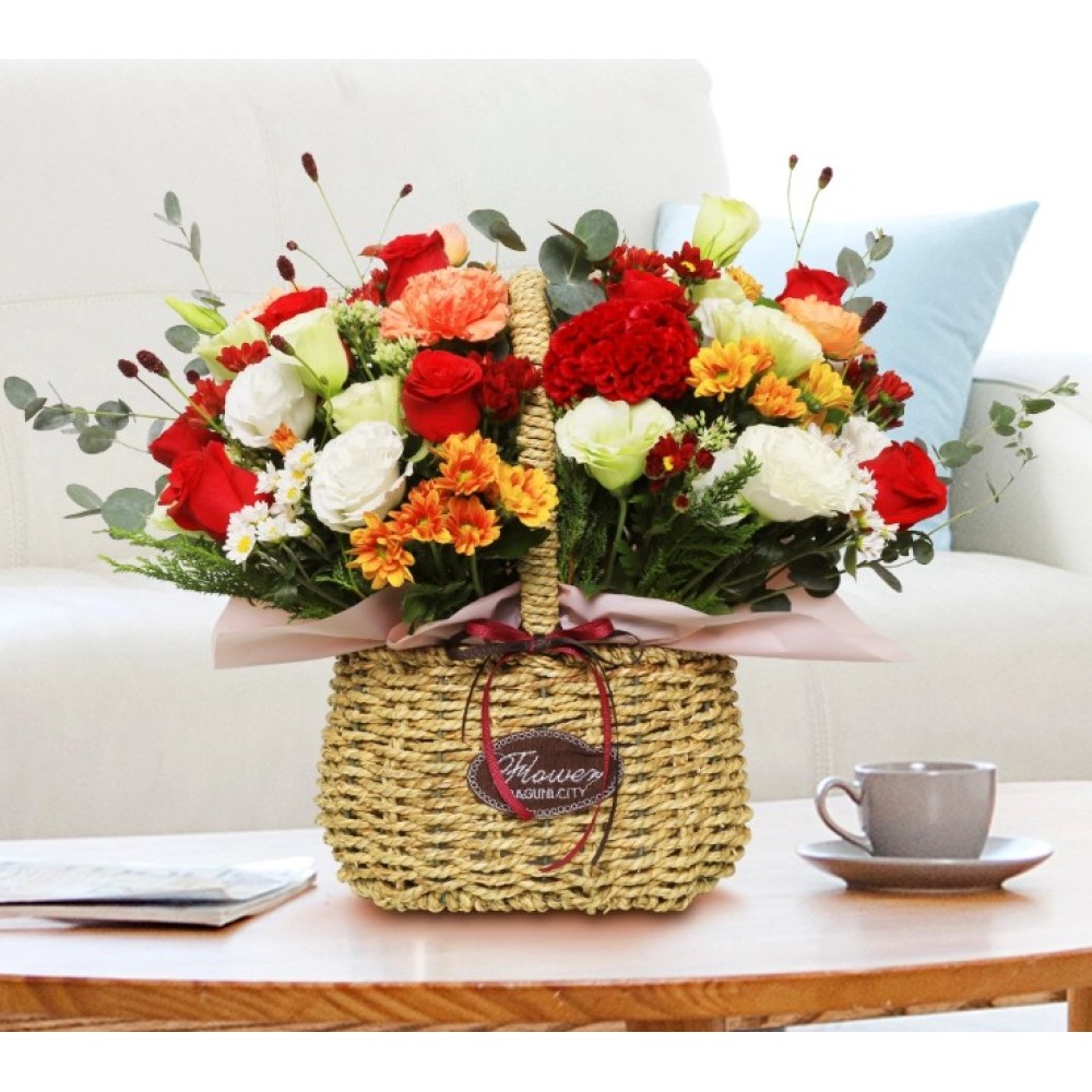 꽃바구니 - 붉은혼합 (총 높이 약 40cm)+0원